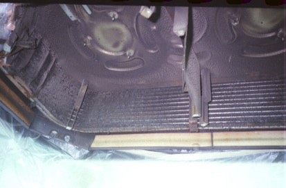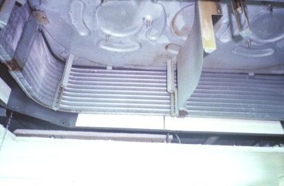 | エアコン洗浄前 エバポレーター内部まで埃や細菌が詰まって汚れています。 |